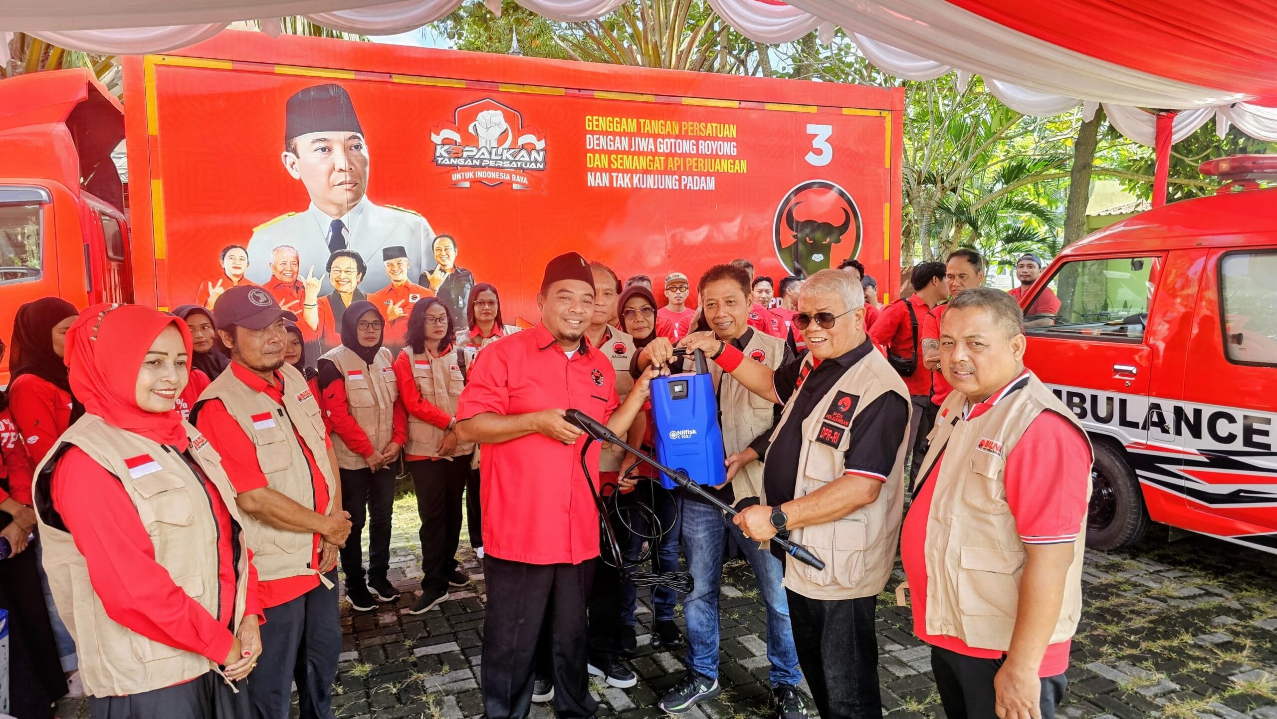 Bantuan DPP PDI Perjuangan tersebut antara lain berupa obat-obatan, pulunan alat high presure washer untuk penyemprotan endapan lumpur, bantuan pakaian, kendaraan ambulans, dan rompi BAGUNA.