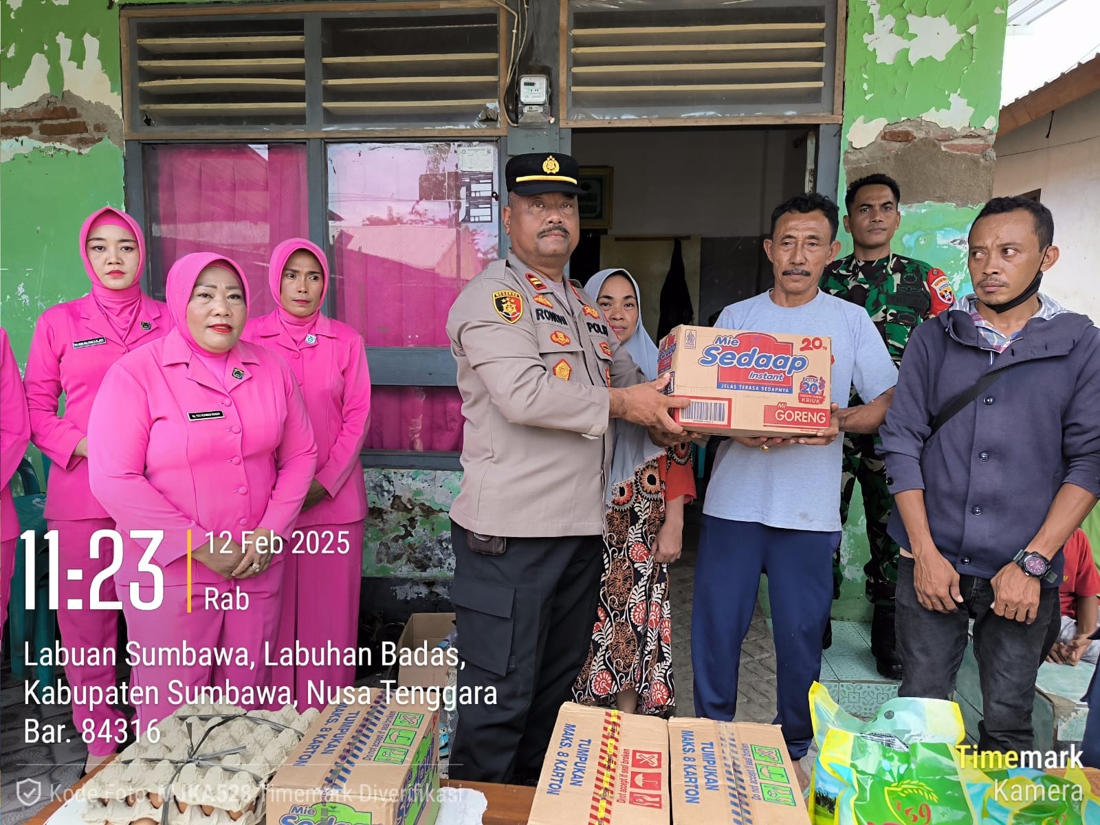 Kapolsek Iptu Rohmad Rondhi dalam kesempatan tersebut menyampaikan bahwa kegiatan bakti sosial ini merupakan bentuk nyata kepedulian Polsek Labuhan Badas dan Bhayangkari terhadap warga yang menjadi korban bencana kebakaran.