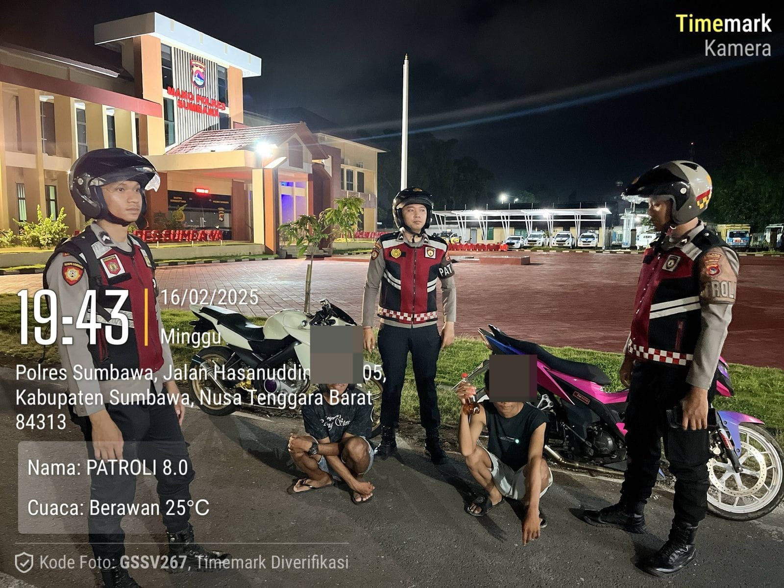 Sumbawa Besar–NTB, Unit Patroli Samapta Polres Sumbawa bergerak cepat menindaklanjuti laporan masyarakat terkait aksi meresahkan yang dilakukan oleh sejumlah remaja pada Minggu malam 16 Februari 2025.