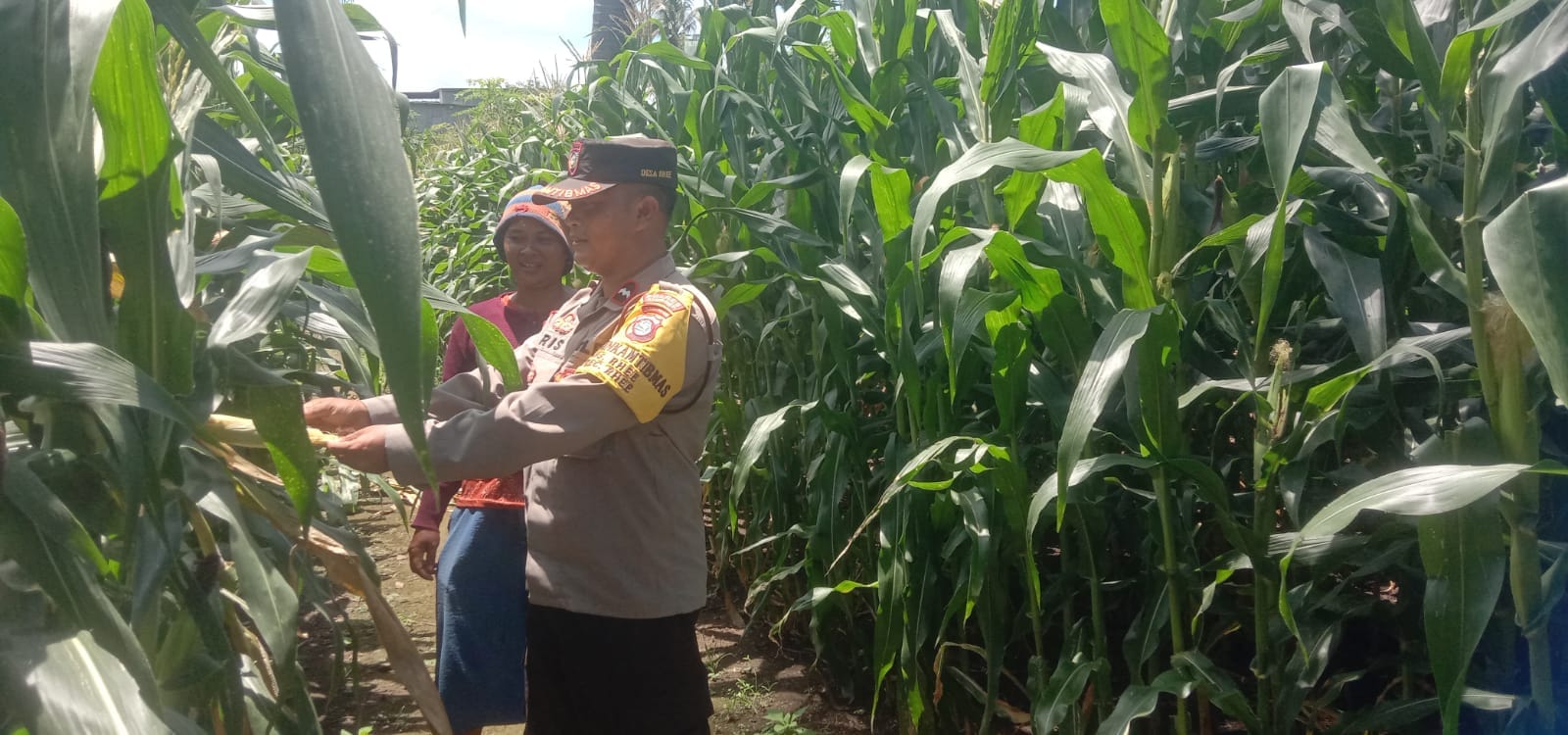 Pada kesempatan tersebut, Aipda Alfian mengunjungi salah satu warga yang memiliki lahan pertanian jagung di Dusun Poto Pedu, Kecamatan Rhee.