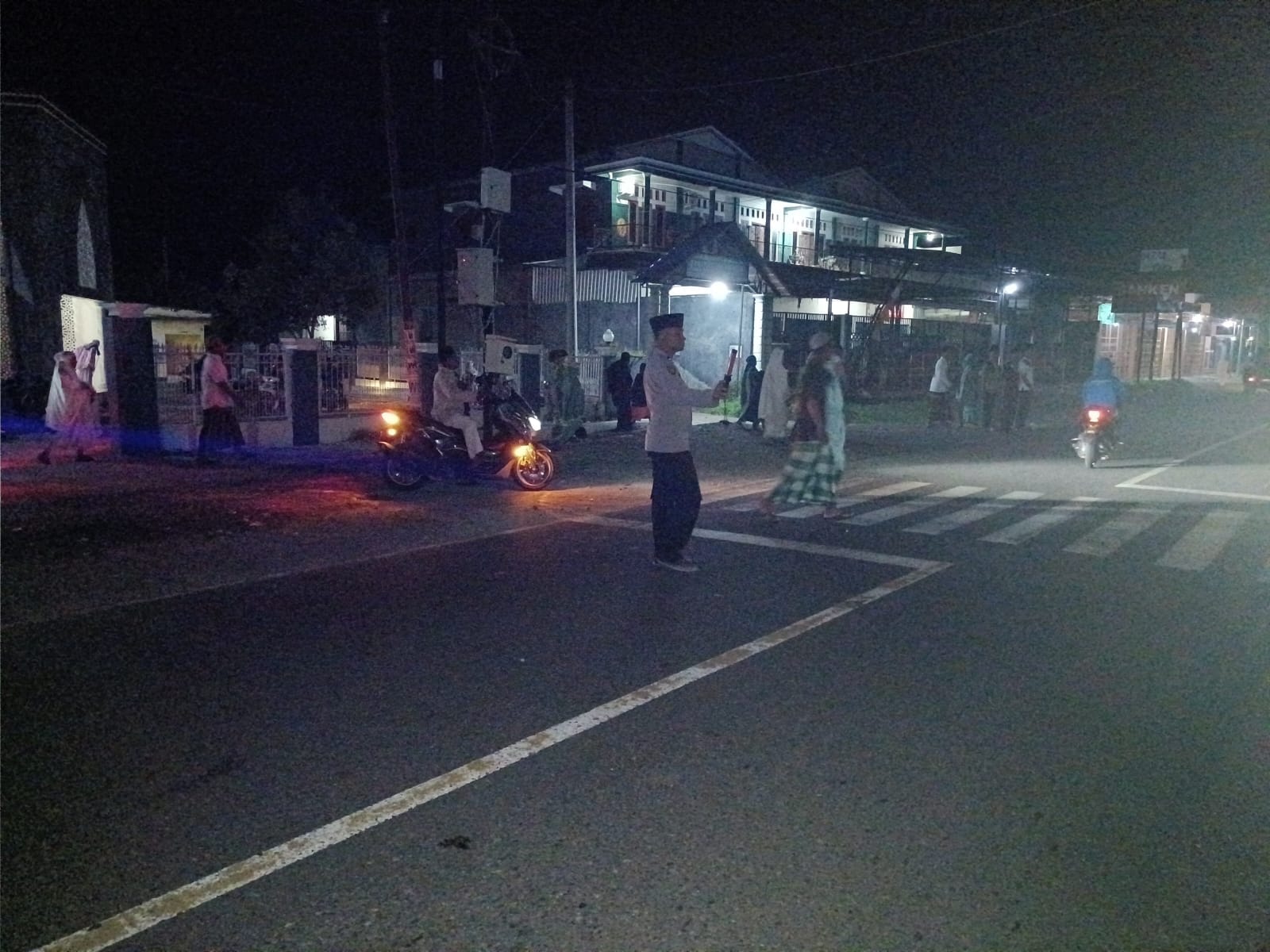 Sumbawa Besar–NTB, Dalam rangka menciptakan situasi yang aman dan nyaman selama bulan suci Ramadan, Polsek Utan, jajaran Polres Sumbawa, melaksanakan pengamanan kepada jamaah yang melaksanakan ibadah shalat Isya’ dan tarawih di Masjid Darul Hikmah, Desa Jorok, Kecamatan Utan, Kabupaten Sumbawa, Selasa (04/03/25).