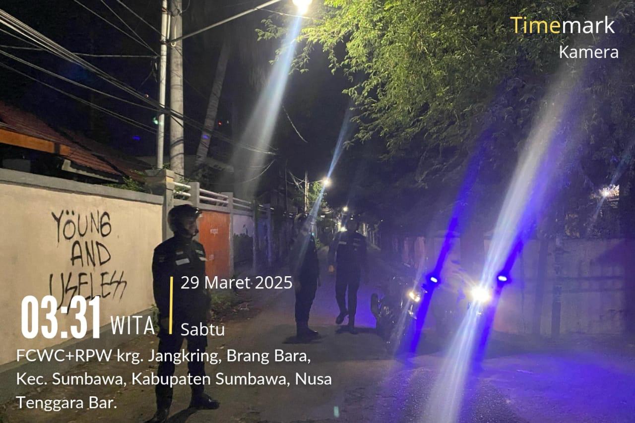 Sumbawa Besar–NTB, Personel Unit Patroli Samapta Polres Sumbawa melaksanakan patroli subuh menjelang sahur, dalam rangka menciptakan dan menjaga kondusivitas selama bulan suci Ramadhan, Sabtu (29/03/25).