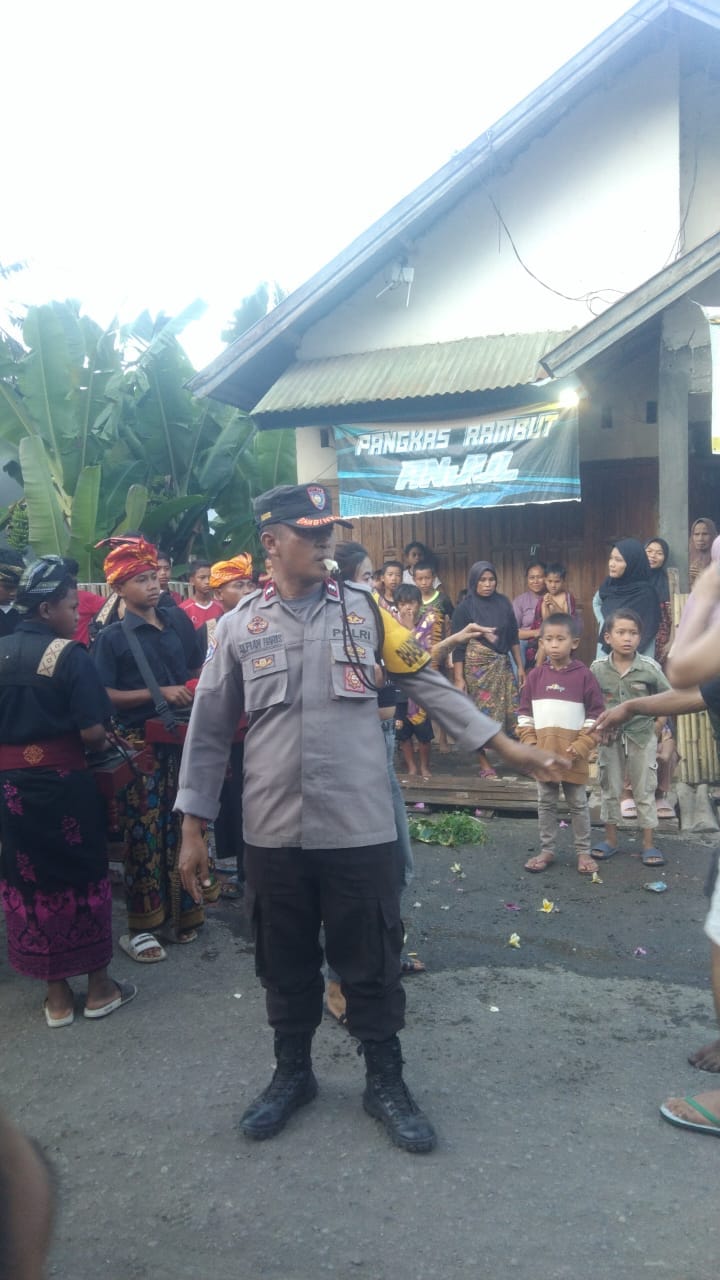 Sumbawa Besar–NTB, Bhabinkamtibmas Kepolisian Sektor Rhee, Aipda Alfian Haris melaksanakan kegiatan pengawalan dan edukasi keamanan pada acara khitanan warga di Desa Rhee, Kecamatan Rhee pada hari Rabu, (11/6/2025) pukul 16.30 WITA.