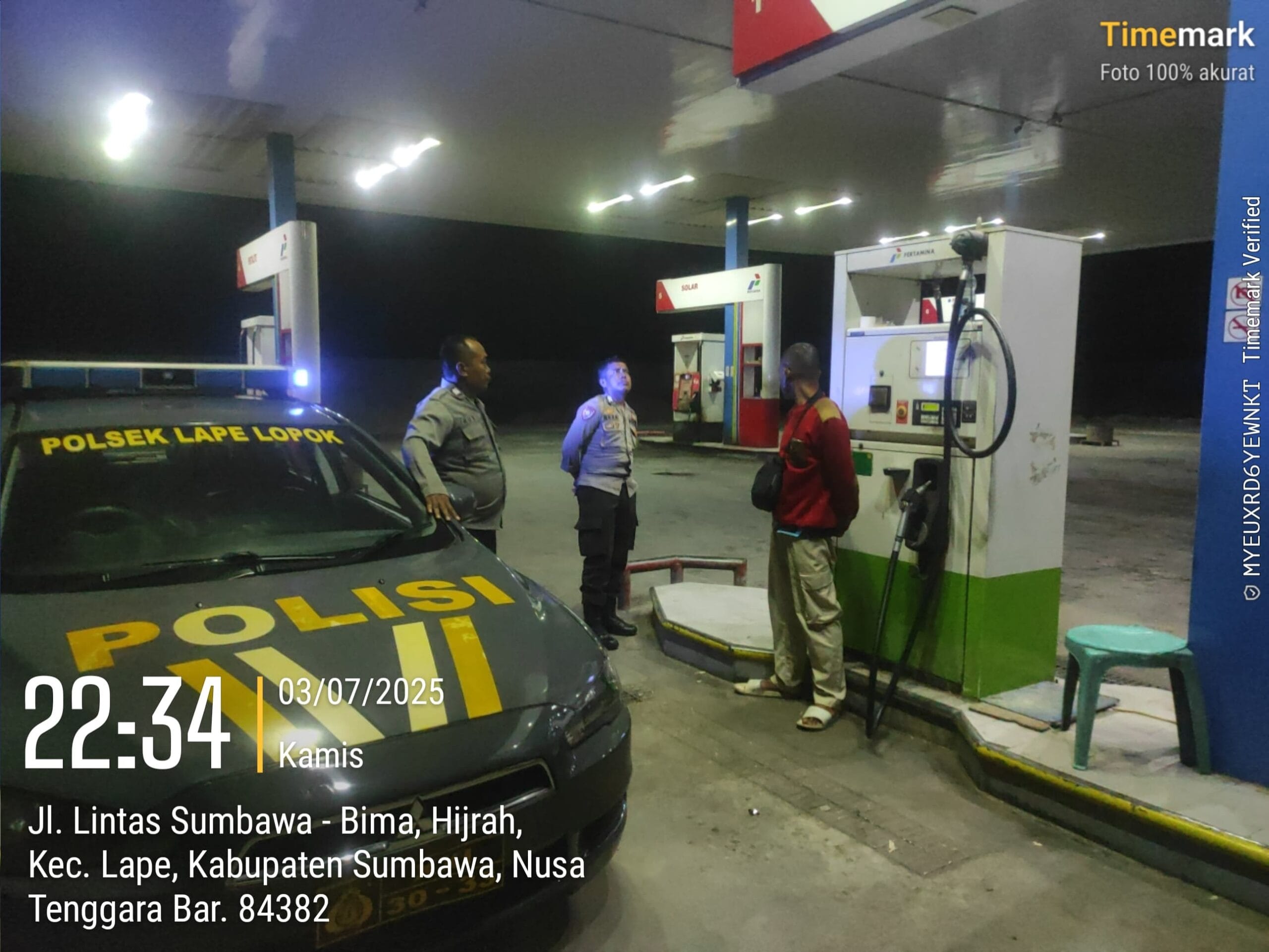 Sumbawa Besar, NTB — Anggota piket jaga SPKT III Polsek Lape Polres Sumbawa secara rutin melaksanakan patroli Blue Light dan Kegiatan Rutin Yang Ditingkatkan (KRYD) untuk menjaga keamanan dan ketertiban masyarakat di wilayah hukum Polsek Lape, Kamis (03/07/2025) malam.