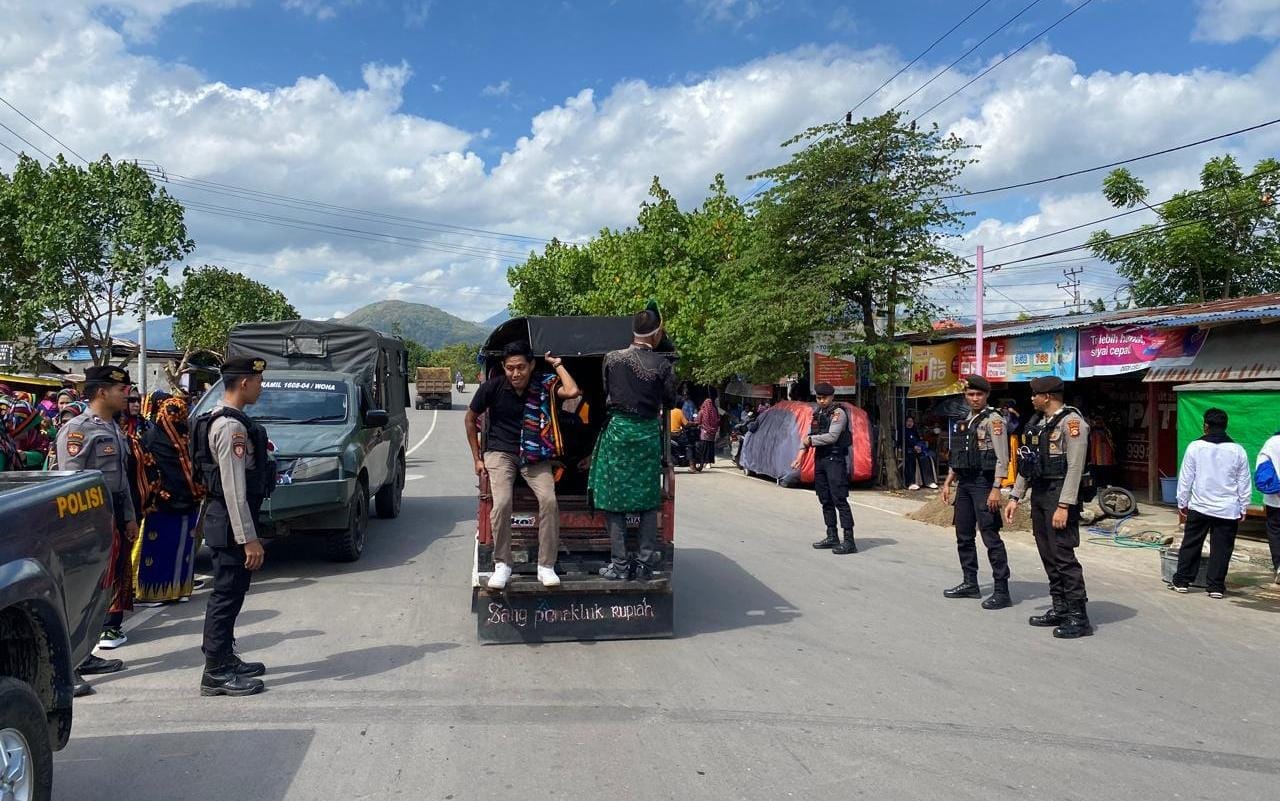 Polres Bima Polda NTB melalui Satuan Samapta menggelar pengamanan pergelaran pawai budaya Rimpu Mpida dalam rangka menyambut HUT Kabupaten Bima Ke 385 tahun 2025.