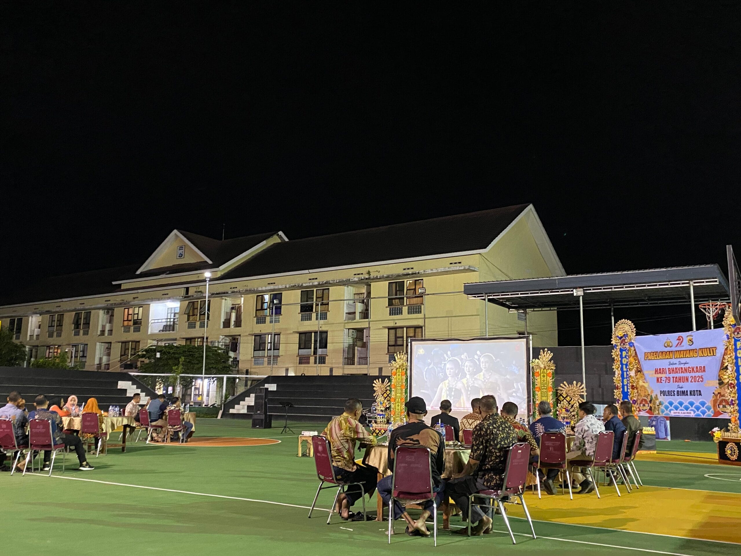 Kota Bima, NTB (5 Juli 2025) – Dalam rangka memperingati Hari Ulang Tahun (HUT) Bhayangkara ke-79, Polres Bima Kota menggelar kegiatan Nonton Bareng (Nobar) Pagelaran Wayang Kulit pada Jumat malam, 4 Juli 2025, pukul 20.30 WITA, bertempat di Lapangan Basket Polres Bima Kota.