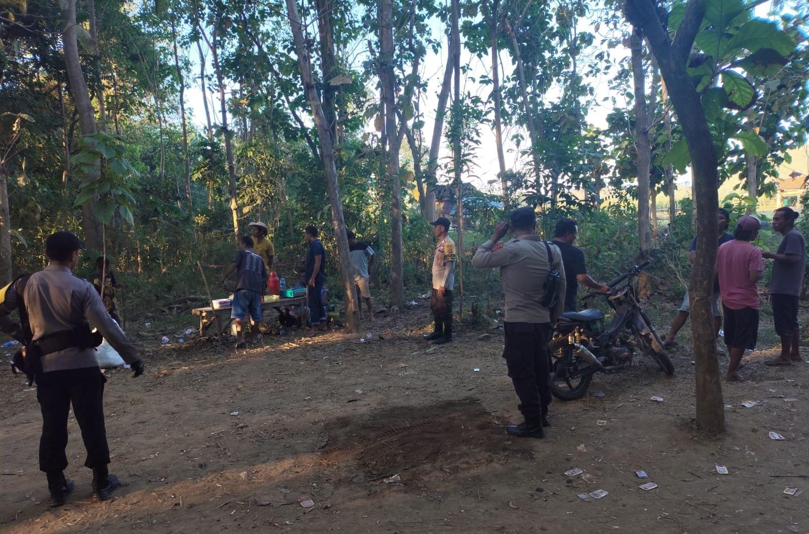 Anggota Polsek Madapangga Polres Bima Polda NTB melakukan penggerebekan sekaligus membubarkan terhadap sekelompok warga yang diduga melakukan judi sabung ayam.