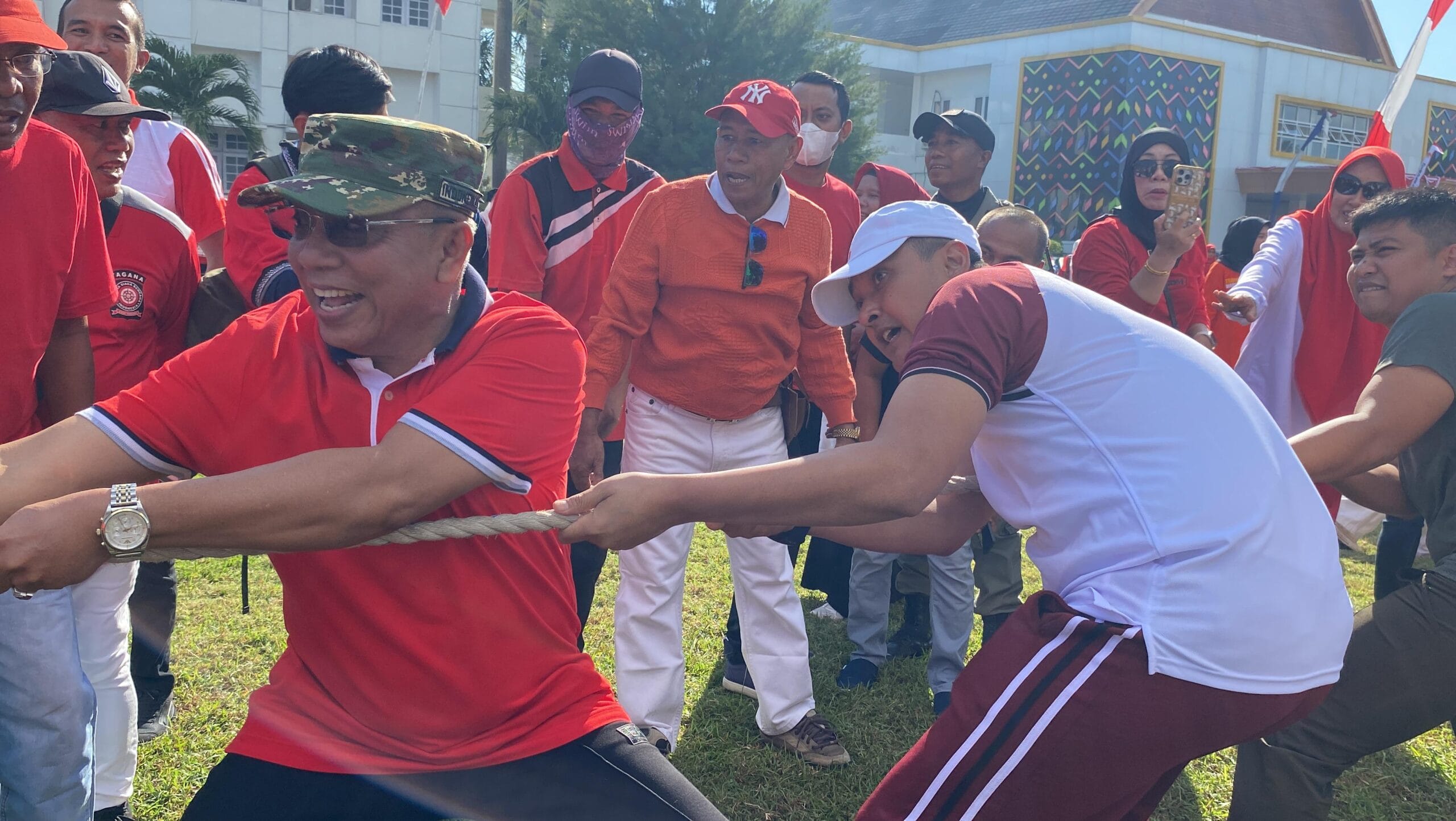 Dalam kesempatan tersebut, Kapolres Bima Kota turut ambil bagian dalam lomba tarik tambang, yang menjadi ajang kebersamaan dan kekompakan antarpejabat dan unsur Forkopimda Kota Bima. Lomba tersebut dibuka langsung oleh Wali Kota Bima dan diikuti oleh sejumlah tokoh penting daerah, seperti Ketua DPRD Kota Bima, Wakil Ketua DPRD Alfian Indra Wirawan, serta pejabat OPD lainnya.