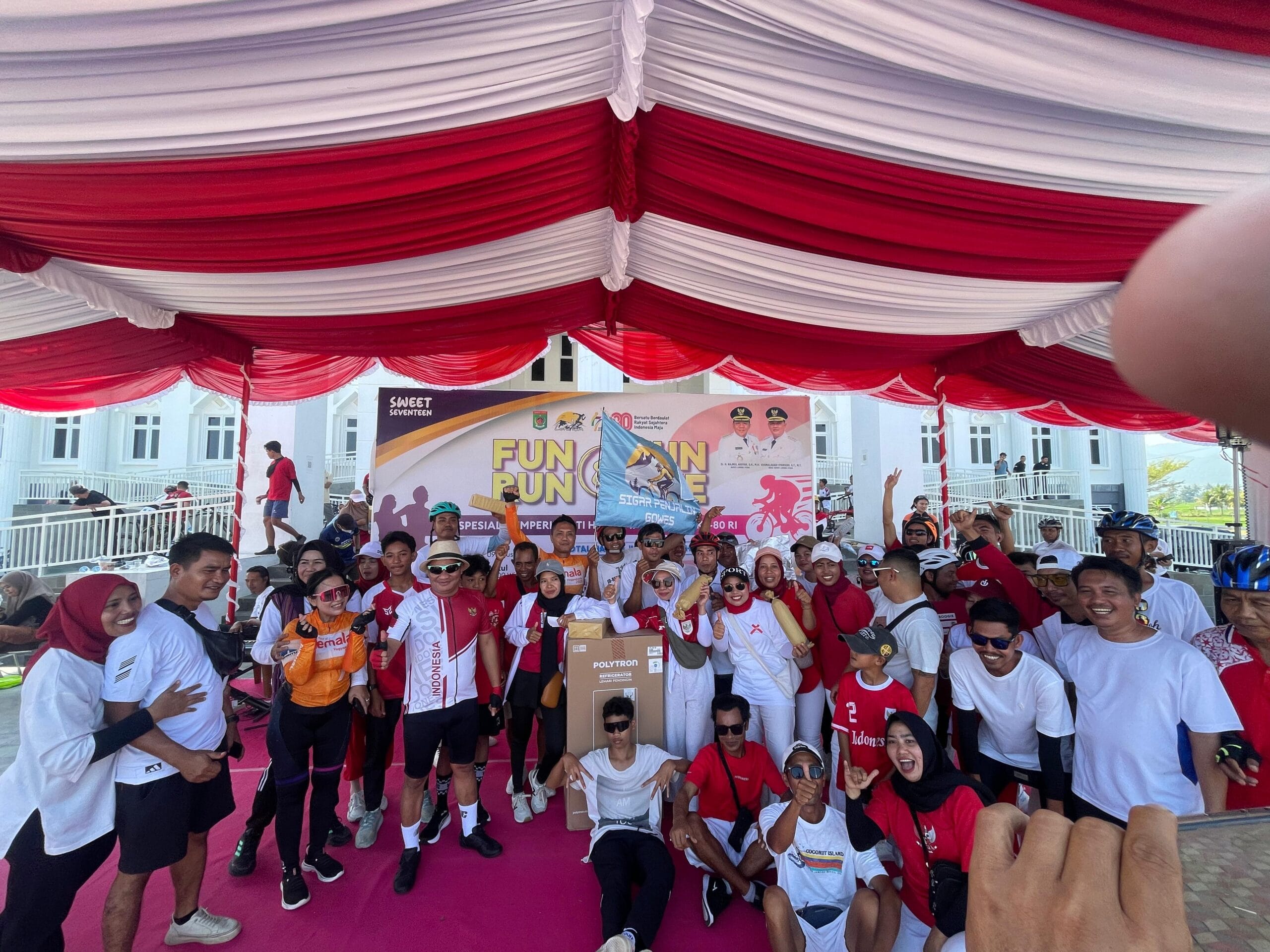 Lombok Utara – Kapolres Lombok Utara AKBP Agus Purwanta, S.I.K. menghadiri sekaligus mengikuti kegiatan Fun Bike yang digelar di Pemerintah Kabupaten Lombok Utara. Kegiatan ini dilaksanakan dalam rangka memperingati Hari Ulang Tahun Kemerdekaan Republik Indonesia ke-80 serta HUT Kabupaten Lombok Utara ke-17. Yang bertempat di Gangga KLU, Minggu,10/8/2025.