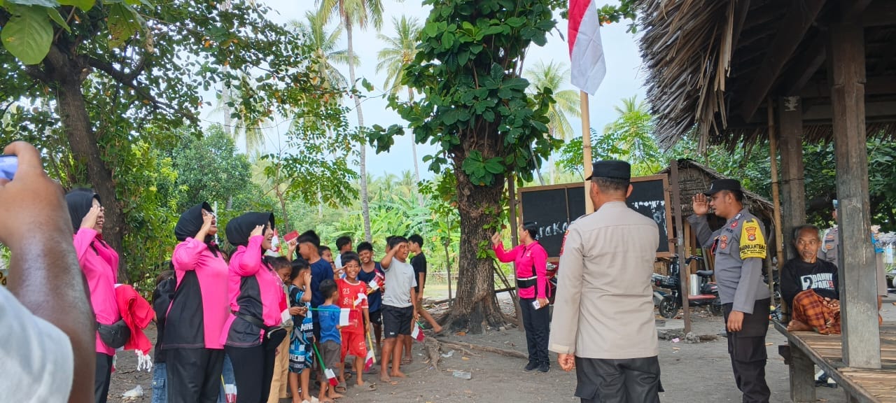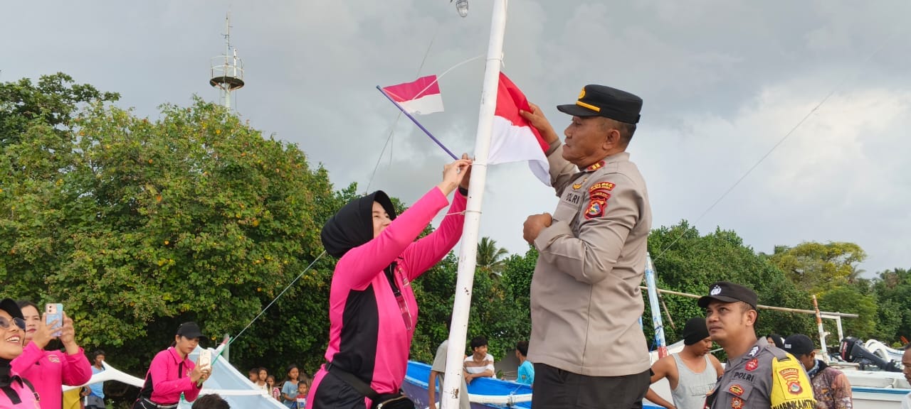 Lombok Utara — Dalam rangka memeriahkan dan menyambut HUT ke-80 Republik Indonesia, Ketua Bhayangkari Cabang Lombok Utara, Ny. Heny Agus Purwanta, didampingi Kapolsek Gangga IPTU Andi Kusnadi, membagikan bendera Merah Putih kepada masyarakat dan nelayan di Dusun Kerakas, Desa Segara Katon, Kecamatan Gangga, Senin (11/8/2025) pukul 16.00 WITA.