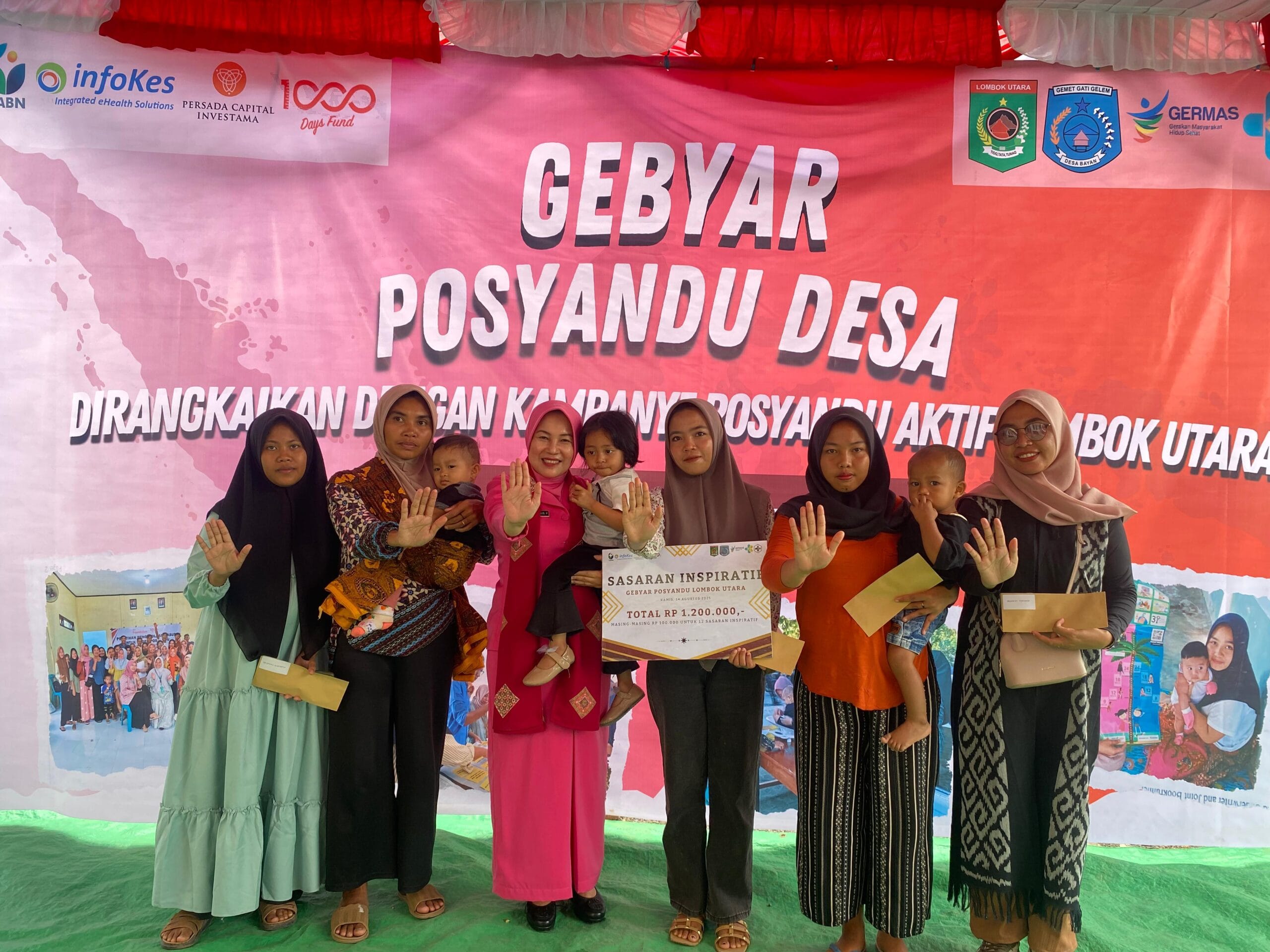 Kegiatan ini dihadiri oleh Sekda KLU Anding Dwi Cahyadi, SSTP., MM., Ketua GOW KLU R.R. Pungki Kusmalahadi Syamsuri, Direktur Yayasan Amanah Bangun Negeri Zuraidah Murdia Hamdi, Direktur Bisnis dan Strategi Yayasan 1000 Hari Karina Suryawinata, Kadis Kesehatan dr. Bahrudin, Kadis Sosial PPA KLU Faturrahman, Camat Bayan Aripin, S.Sos., para kepala desa se-Kecamatan Bayan, kader Posyandu, tenaga kesehatan, dan masyarakat setempat.