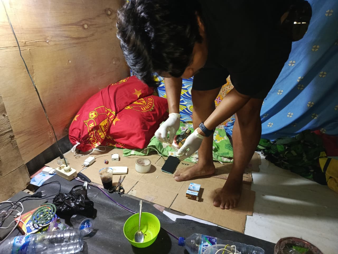 “Dari hasil penggeledahan, kami mengamankan 11 bungkus plastik klip berisi kristal sabu, 3 bungkus plastik klip kosong, 1 bungkus plastik, 1 kantong warna hitam, 1 kaca, 1 kotak warna merah muda, 1 korek api, 1 dompet warna hitam, 1 alat hisap (bong), 1 kartu identitas, 3 pipet sendok, 2 unit handphone, serta uang tunai Rp 1.200.000,” jelas AKP Malaungi.