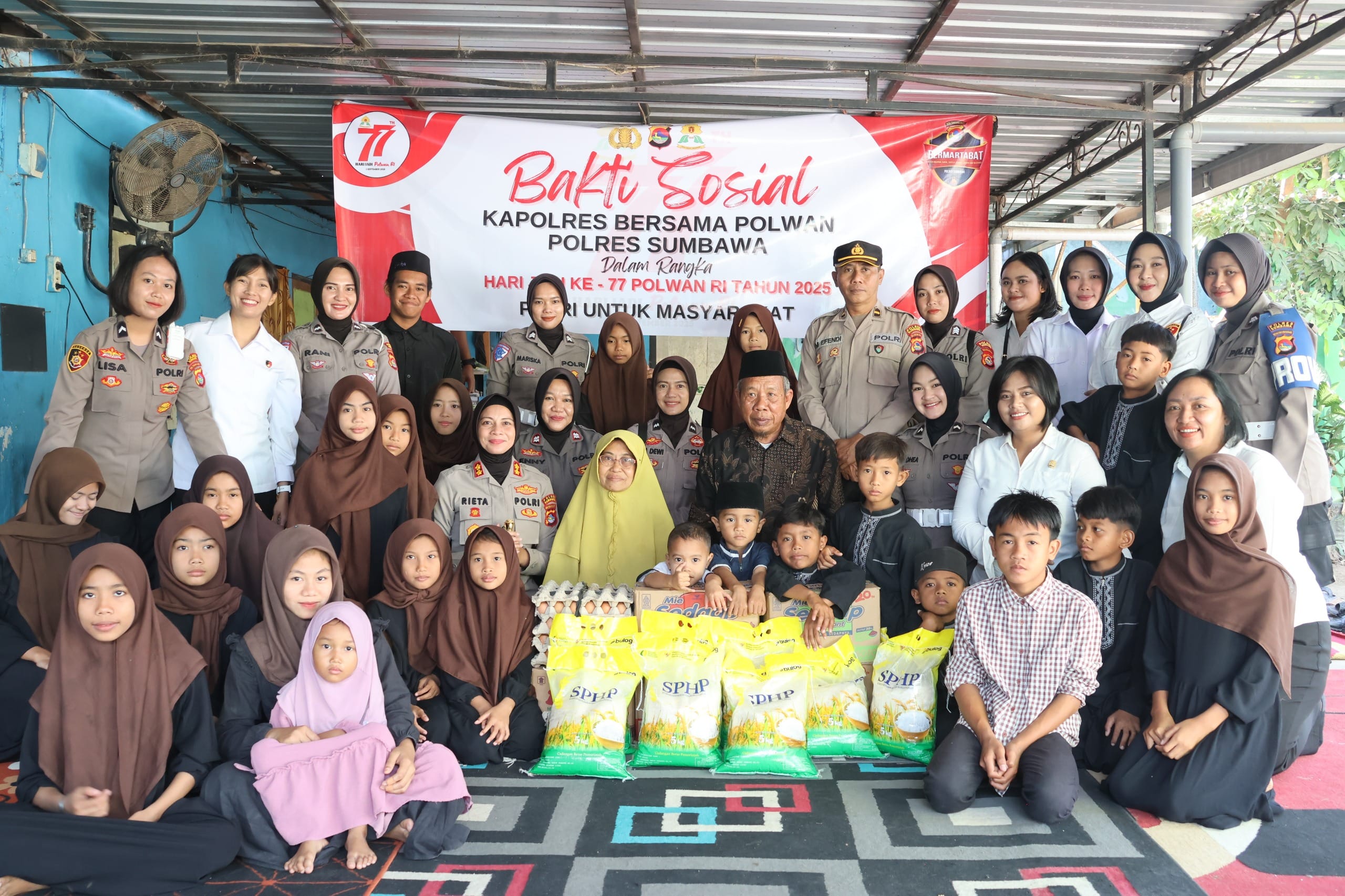 Sumbawa Besar, NTB — Dalam rangka menyambut Hari Jadi Polisi Wanita (Polwan) ke-77, Kapolres Sumbawa AKBP Marieta Dwi Ardhini, S.H., S.I.K., beserta jajaran Polwan Polres Sumbawa menggelar kegiatan anjangsana di Panti Asuhan Al-Mizan, Desa Lopok, Kecamatan Lopok, pada Kamis (28/8/2025). Kegiatan ini merupakan bagian dari rangkaian bakti sosial dan upaya mempererat tali silaturahmi dengan masyarakat.