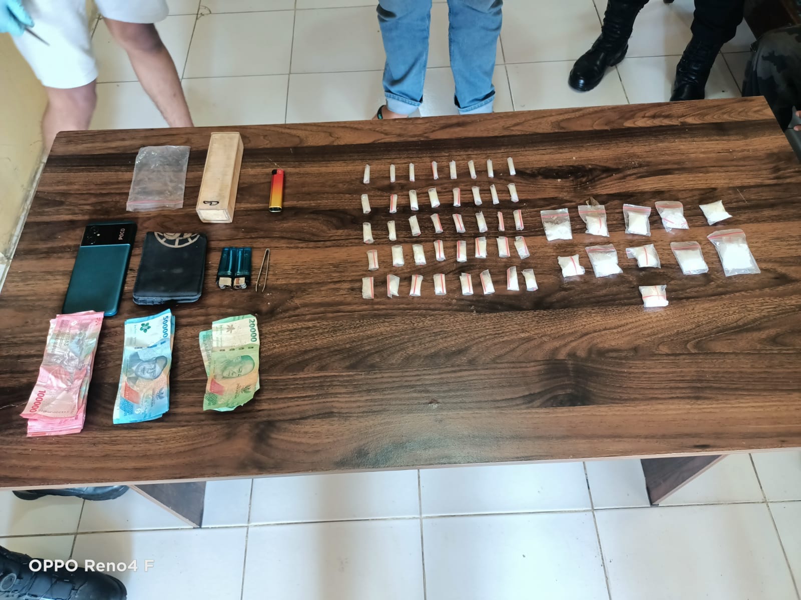 Dari hasil penggeledahan, polisi menyita 12 poket besar dan 40 poket kecil berisi sabu dengan berat kotor mencapai 95,59 gram. Selain itu, turut diamankan sejumlah barang bukti lain berupa korek gas, alat cabut jenggot, HP android, dan uang tunai.