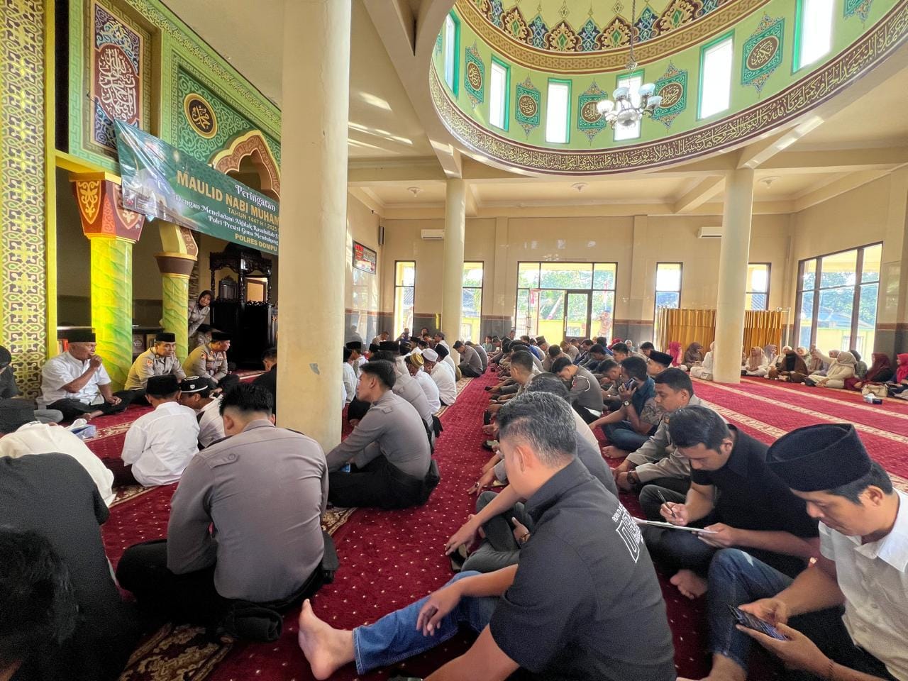 Ceramah agama disampaikan oleh Ustadz Sya’ban yang mengupas tentang pentingnya meneladani sifat-sifat Rasulullah SAW, seperti amanah, jujur, sabar, dan kasih sayang, khususnya dalam melaksanakan tugas sebagai anggota kepolisian.