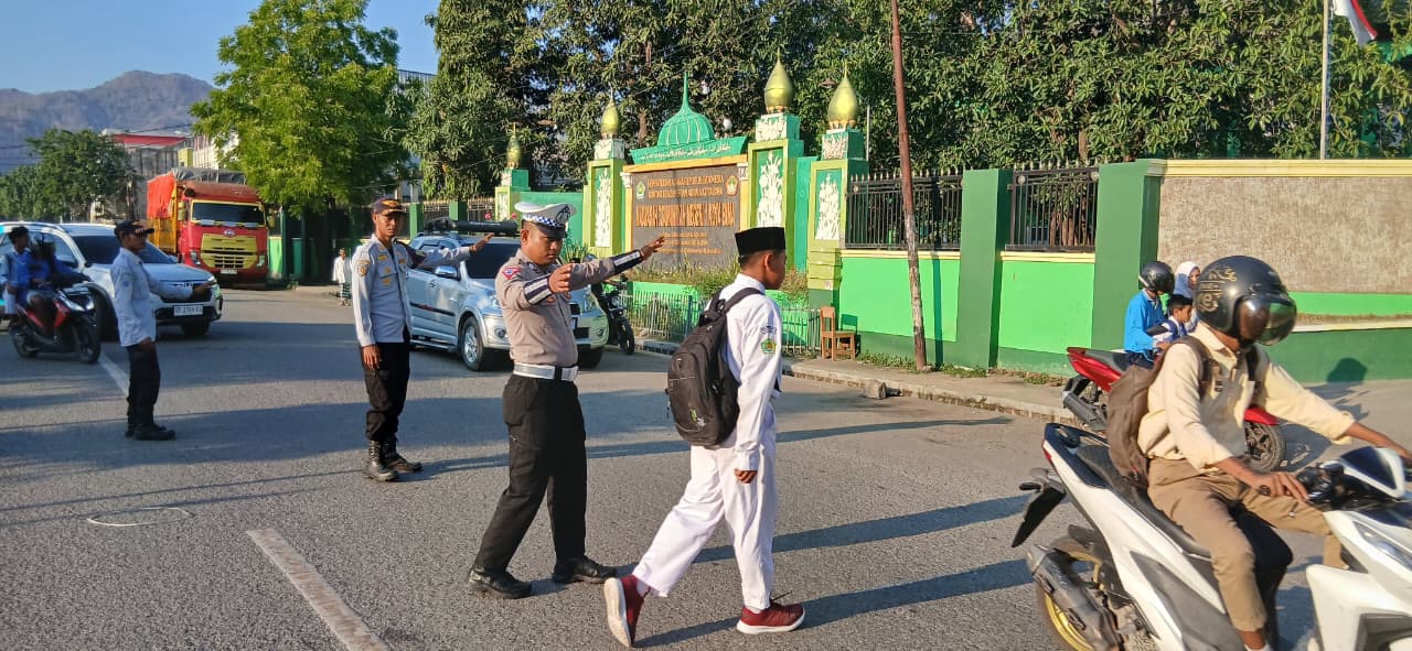Kota Bima, NTB (07 Oktober 2025) – Dalam rangka memberikan pelayanan terbaik kepada masyarakat dan menjaga kelancaran arus lalu lintas pada jam sibuk, anggota Lantas Polsek Rasanae Barat Polres Bima Kota melaksanakan kegiatan Rawan Pagi atau Strong Point pada Selasa (7/10/2025) pukul 06.30 Wita di depan MTsN 1 Kota Bima.