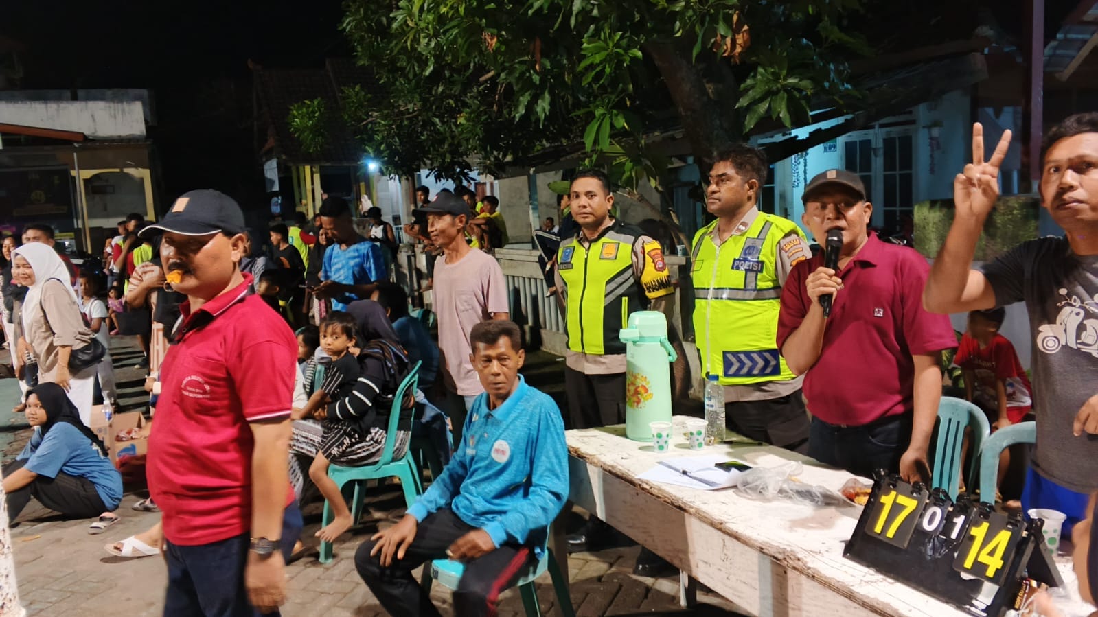 Dalam pelaksanaannya, Bhabinkamtibmas melakukan pemantauan sekaligus memastikan jalannya pertandingan tetap kondusif. Petugas juga tampak berinteraksi dengan panitia serta masyarakat guna menjaga suasana tetap tertib dan aman.