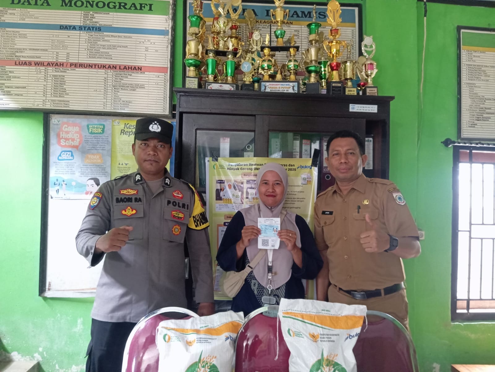 Sumbawa Barat – Bhabinkamtibmas Kelurahan Sampir, Kecamatan Taliwang, Briptu Baori Rozak Anjani melaksanakan kegiatan pendampingan pendistribusian bantuan pangan dari Perum Bulog kepada masyarakat penerima manfaat. Bantuan tersebut berupa beras dan minyak goreng yang diberikan kepada 316 orang warga yang terdaftar sebagai penerima bantuan pangan tahun 2025. Senin, 01/12.