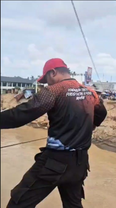 Dalam operasi ini, personel melakukan pemasangan tali sling pada jembatan putus guna memperkuat jalur penyeberangan sementara. Tim juga membantu pemasangan kabel Telkomsel dan XL untuk memastikan konektivitas kembali aktif, serta membantu pengangkutan barang-barang milik warga yang hendak melakukan penyeberangan di lokasi tersebut. Kehadiran personel Brimob memberikan rasa aman kepada masyarakat yang masih harus melewati kawasan tersebut untuk memenuhi kebutuhan sehari-hari.