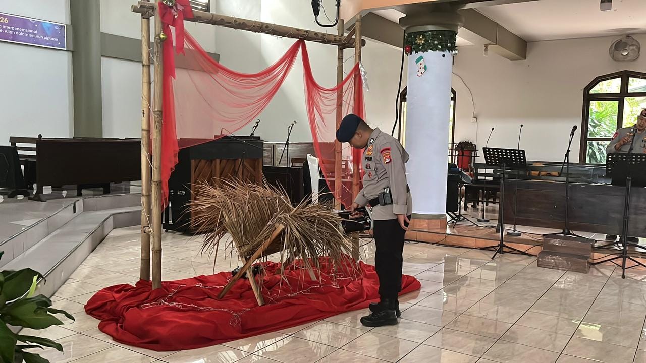 Mataram— Menyambut puncak ibadah Natal 2025, Detasemen Gegana Satuan Brimob Polda NTB, Rabu (24/12/2025), menurunkan tim Penjinak Bom (Jibom) untuk sterilisasi di sejumlah gereja. Langkah tersebut ditempuh guna menjaga situasi tetap kondusif, sekaligus menghadirkan rasa aman bagi umat Kristiani saat beribadah.