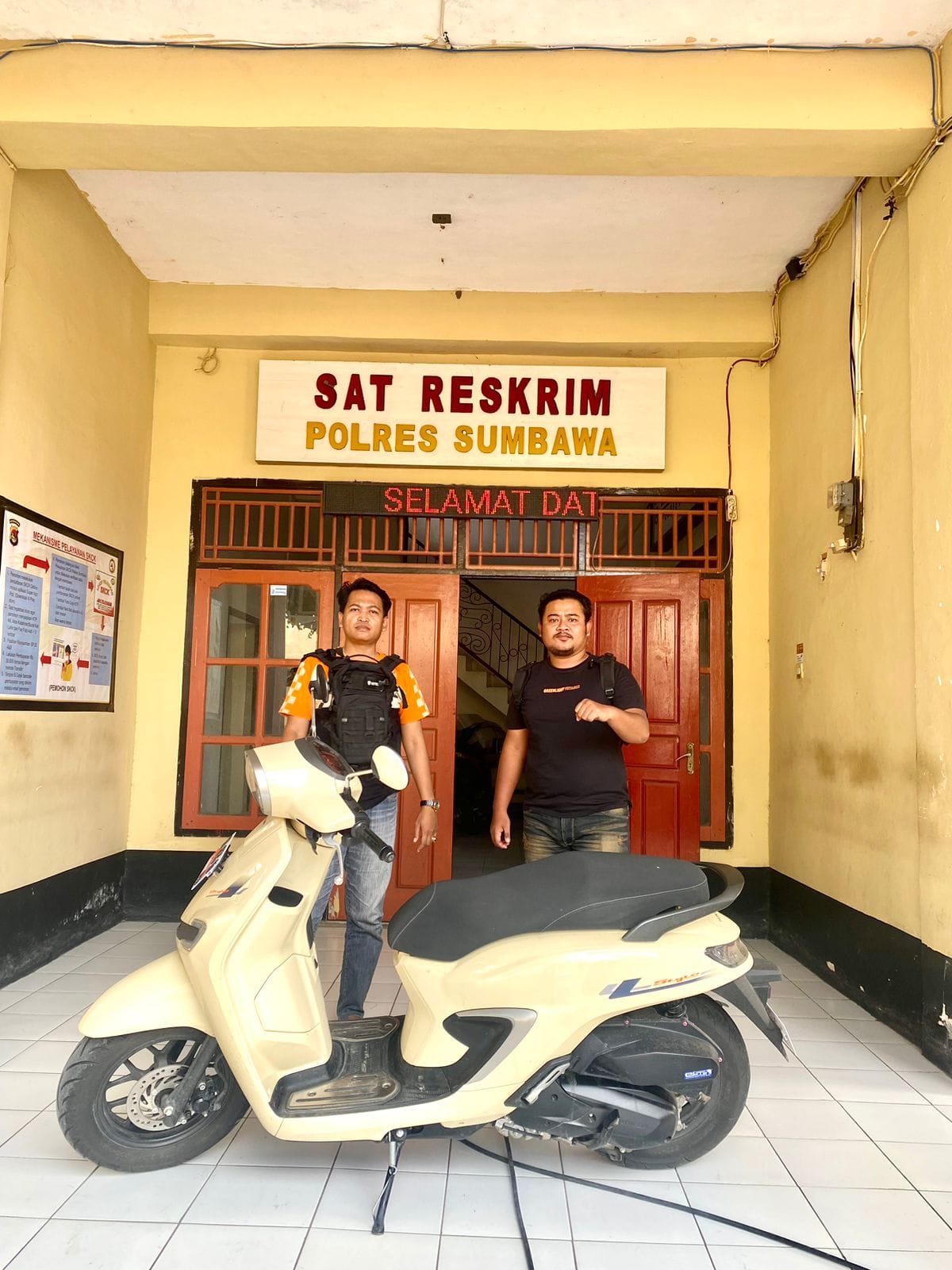 “Tim bergerak menuju Kelurahan Brang Biji dan berhasil membekuk pelaku di rumahnya. Dalam interogasi singkat di lapangan, pelaku SA mengakui semua perbuatannya. Ia berterus terang bahwa sepeda motor Honda Stylo tersebut telah digadaikan kepada salah seorang rekannya.” tambah Iptu Andy.