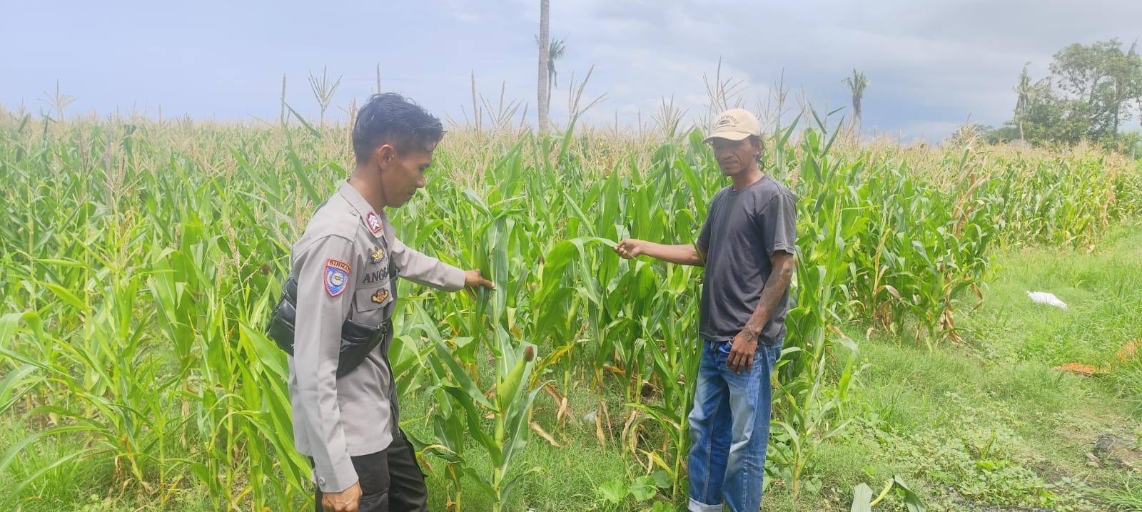 Dalam rangka mendukung Program Ketahanan Pangan Nasional menuju Indonesia Emas 2045, Polsek Kempo melalui Bhabinkamtibmas Desa Songgajah melaksanakan kegiatan pemantauan lahan pertanian jagung milik warga binaan.