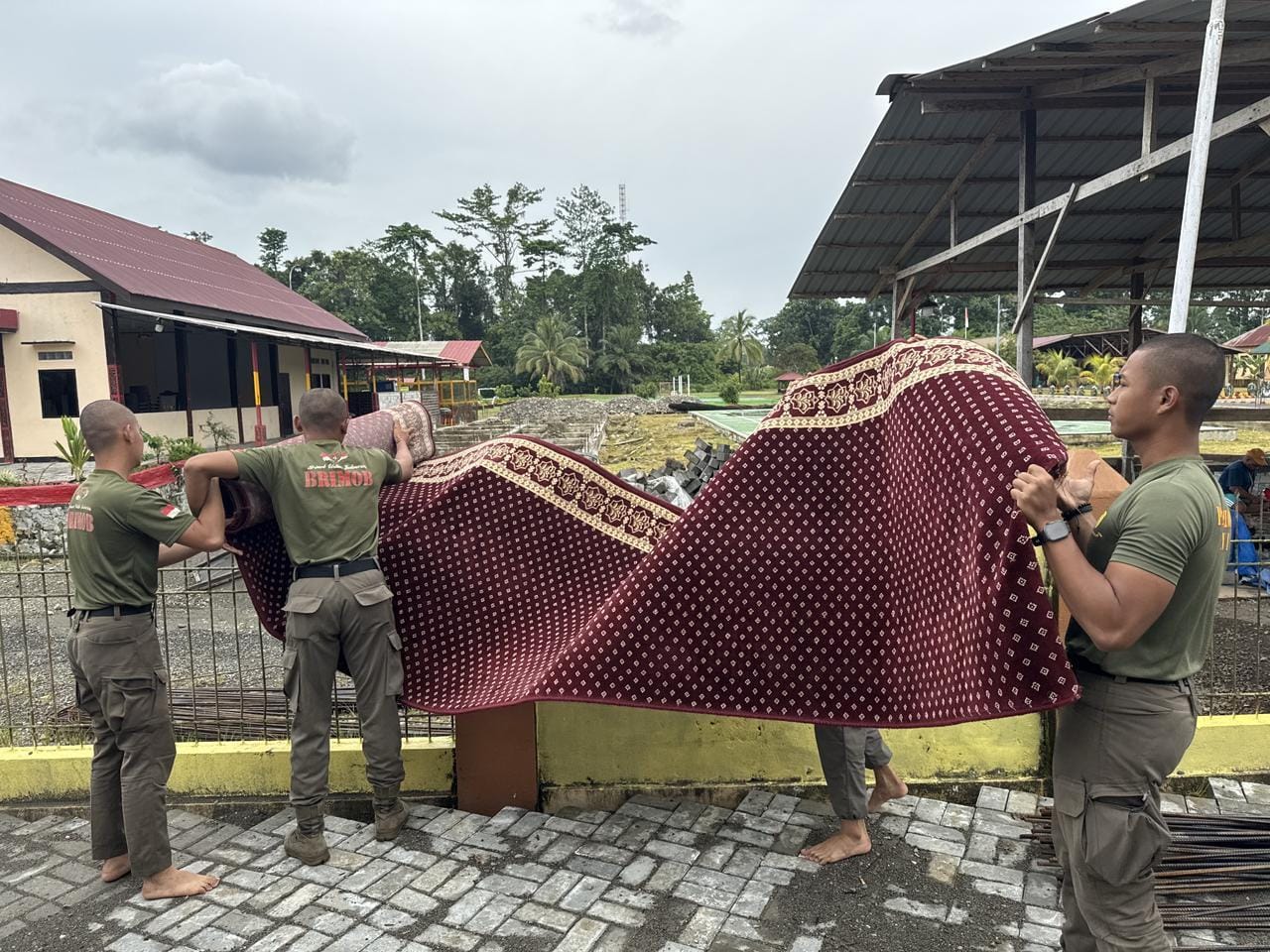 Personel Operasi Damai Cartenz 2026 bergotong royong membersihkan area masjid bersama pengurus dan warga sekitar. Kegiatan ini sekaligus menjadi sarana dialog dan sosialisasi, memperkuat komunikasi antara aparat keamanan dan masyarakat guna menciptakan situasi yang aman dan damai.