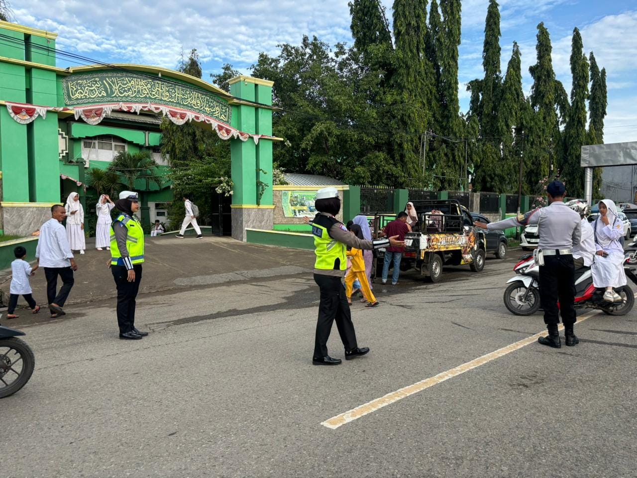 Kapolres Bima Kota AKBP Didik Putra Kuncoro, S.I.K., M.Si melalui Kasi Humas Polres Bima Kota Ipda Baiq Fitria Ningsih menjelaskan bahwa personel Unit Lantas Polsek Rasanae Barat secara aktif membantu menyeberangkan anak-anak sekolah serta melakukan pengaturan arus lalu lintas guna mencegah kemacetan dan potensi kecelakaan lalu lintas.