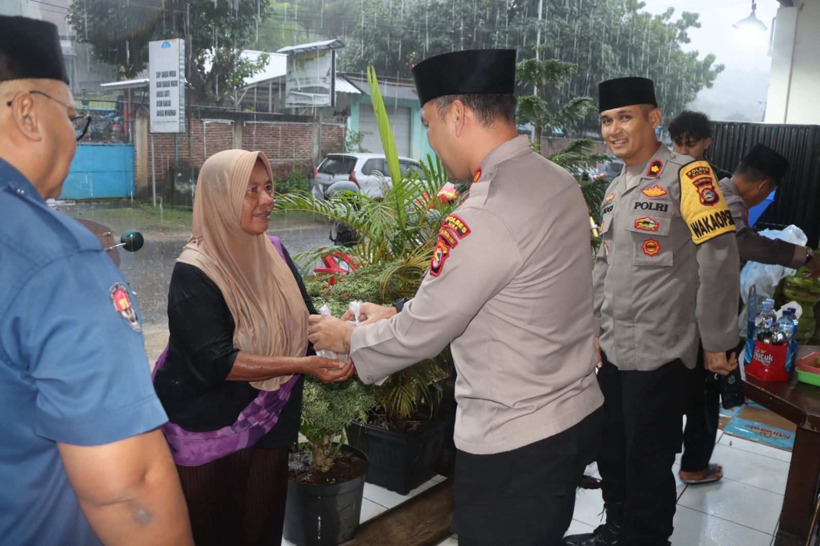 Sebelum pelaksanaan buka puasa bersama, Kapolres Bima Kabupaten beserta jajaran melaksanakan kegiatan sosial berupa pembagian takjil gratis kepada para pengguna jalan yang melintas di kawasan tersebut sebagai bentuk kepedulian Polri kepada masyarakat di bulan suci Ramadhan.