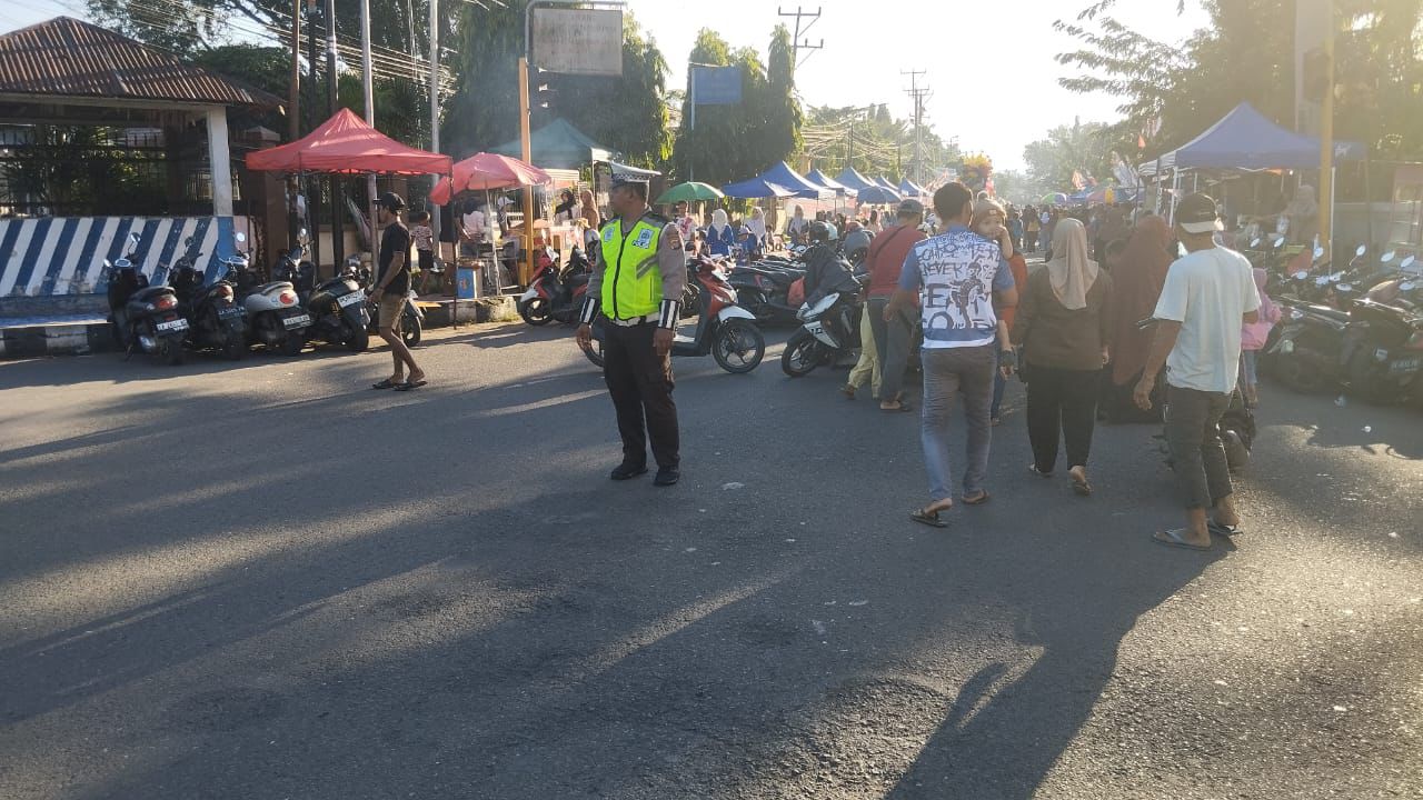 Pengamanan dilaksanakan oleh personel Sat Lantas Polres Dompu, di antaranya AIPTU Aris Christiyoko, dengan fokus pada pengaturan arus lalu lintas, penjagaan, serta memastikan keamanan dan ketertiban selama kegiatan CFD berlangsung.