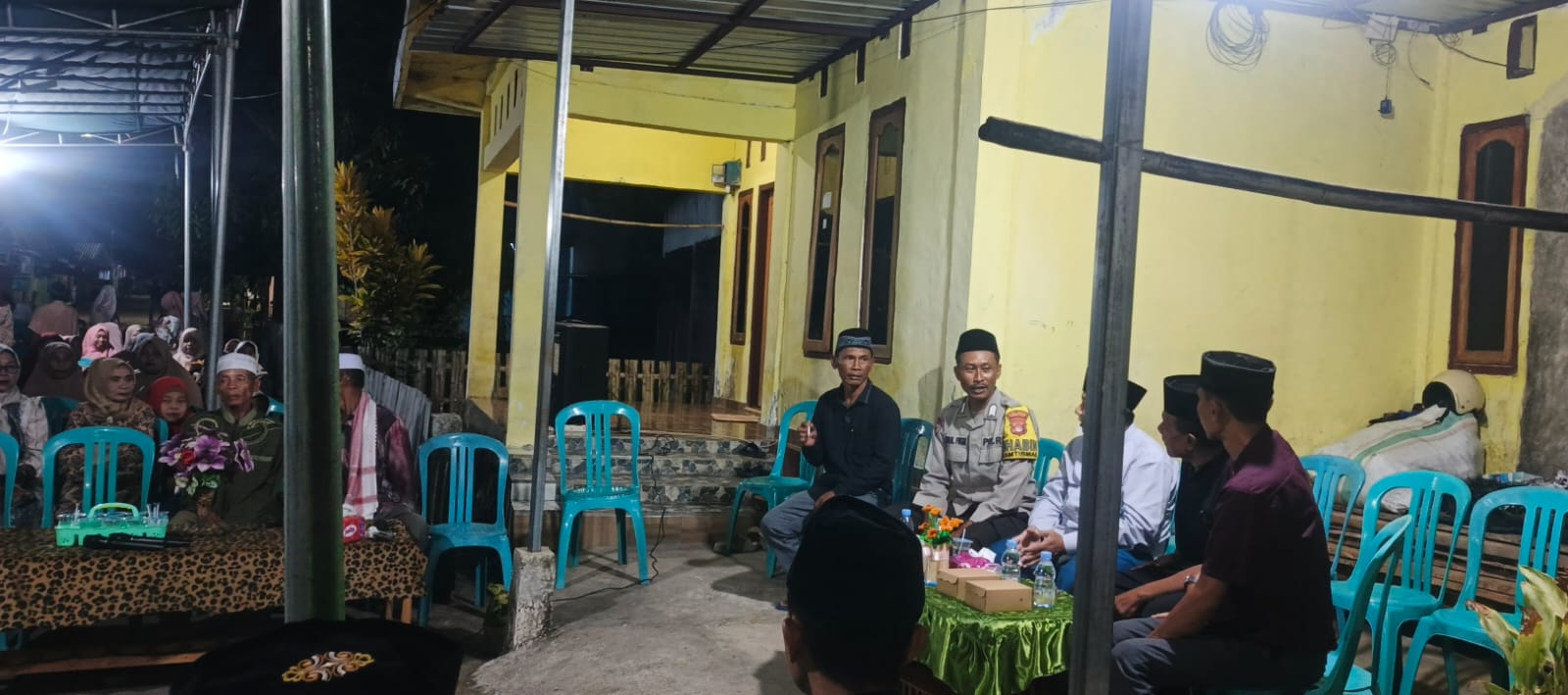 Dalam kegiatan tersebut, Aipda Aidul Fikri turut berbaur bersama para jemaah yang hadir, memberikan dukungan moril kepada keluarga yang ditinggalkan, dan memastikan situasi tetap aman kondusif selama berlangsungnya acara taqziah.