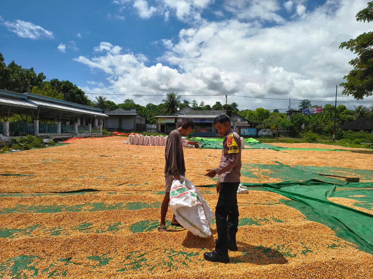 Pantau Penjemuran Jagung Warga, Bhabinkamtibmas Kadindi Barat Dukung Ketahanan Pangan Nasional