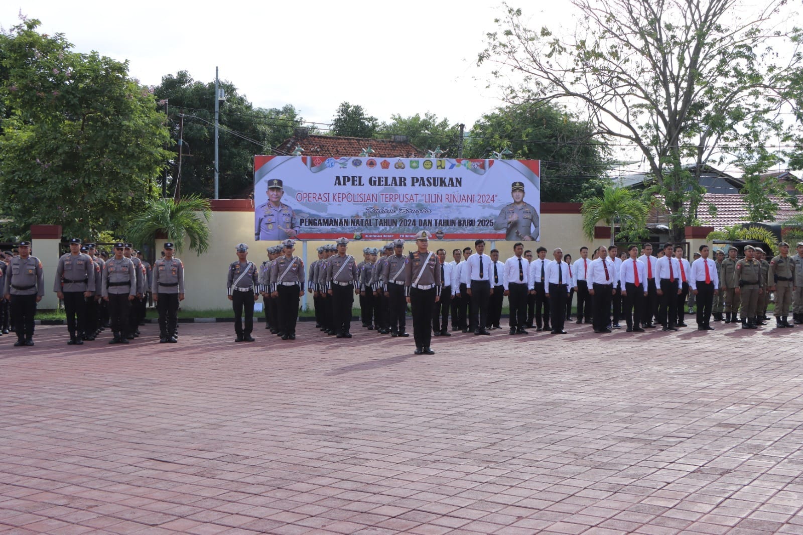 Sumbawa Besar-NTB, Bentuk kesiapsiagaan menghadapi Natal dan Tahun Baru (Nataru), Apel Gelar Pasukan Operasi Lilin Rinjan i2024 dilaksanakan jajaran Polres Sumbawa Polda NTB.