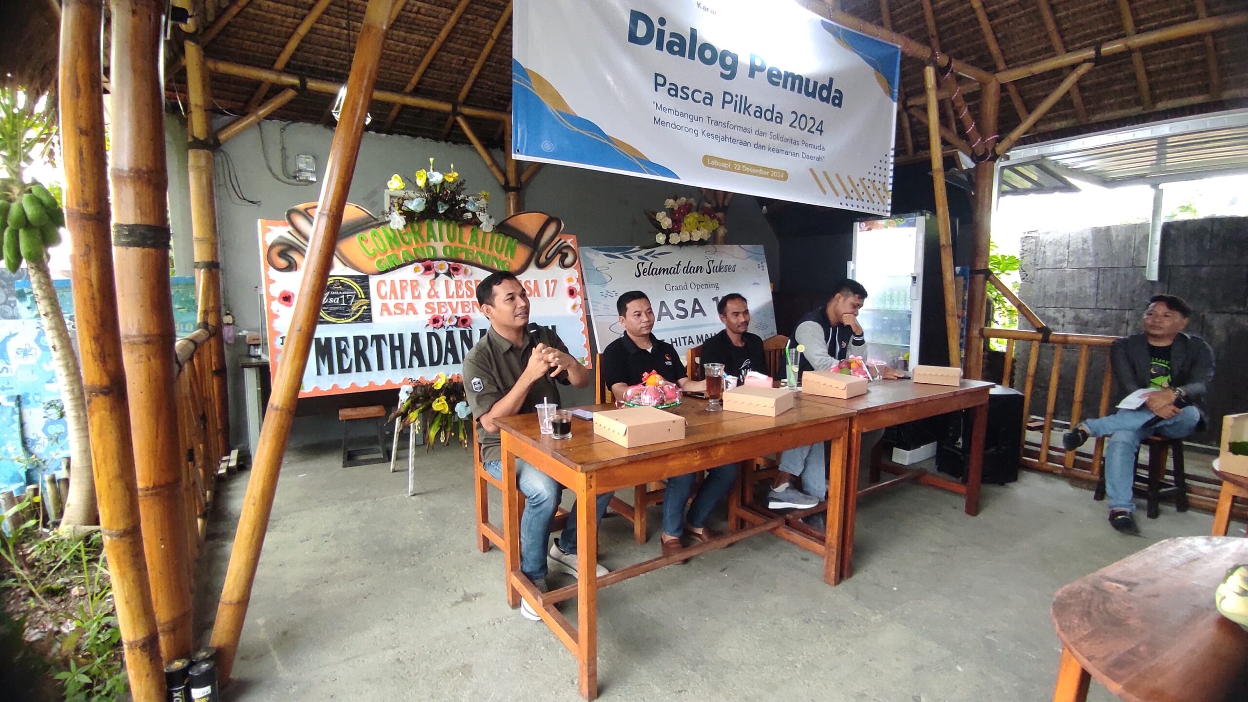 Mengambil tema “Membangun Transformasi Pemuda dan Menjaga Keamanan Daerah Pasca Pilkada 2024” dialog tersebut diselenggarakan di Cafe Asa 17 Seventeen, dengan menghadirkan narasumber dari KPU Lobar Hamdi M.Ap dan Komisioner Bawaslu Syamsul Hadi S.Pd, serta Pahrizal Iqram selaku Akademisi.