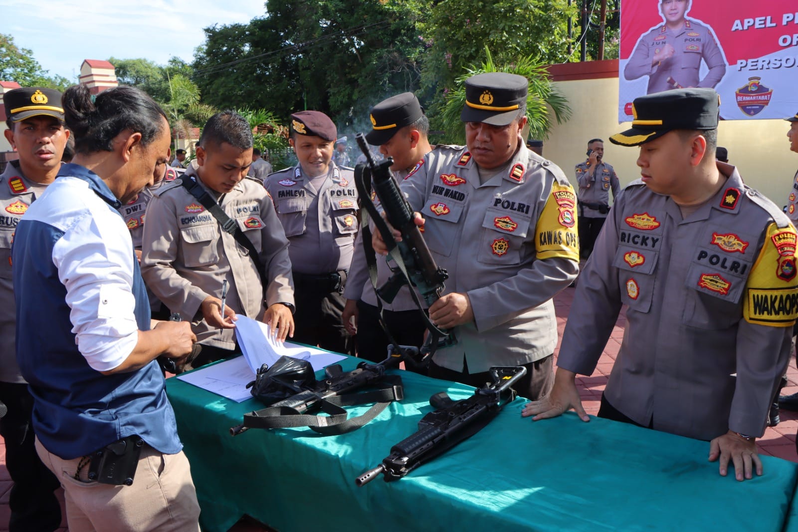 Sumbawa Besar-NTB, Polres Sumbawa di jajaran Polda NTB melaksanakan pemeriksaan senjata api (senpi) pada Senin (23/12/2024) pagi, di lapangan Mapolres Sumbawa.