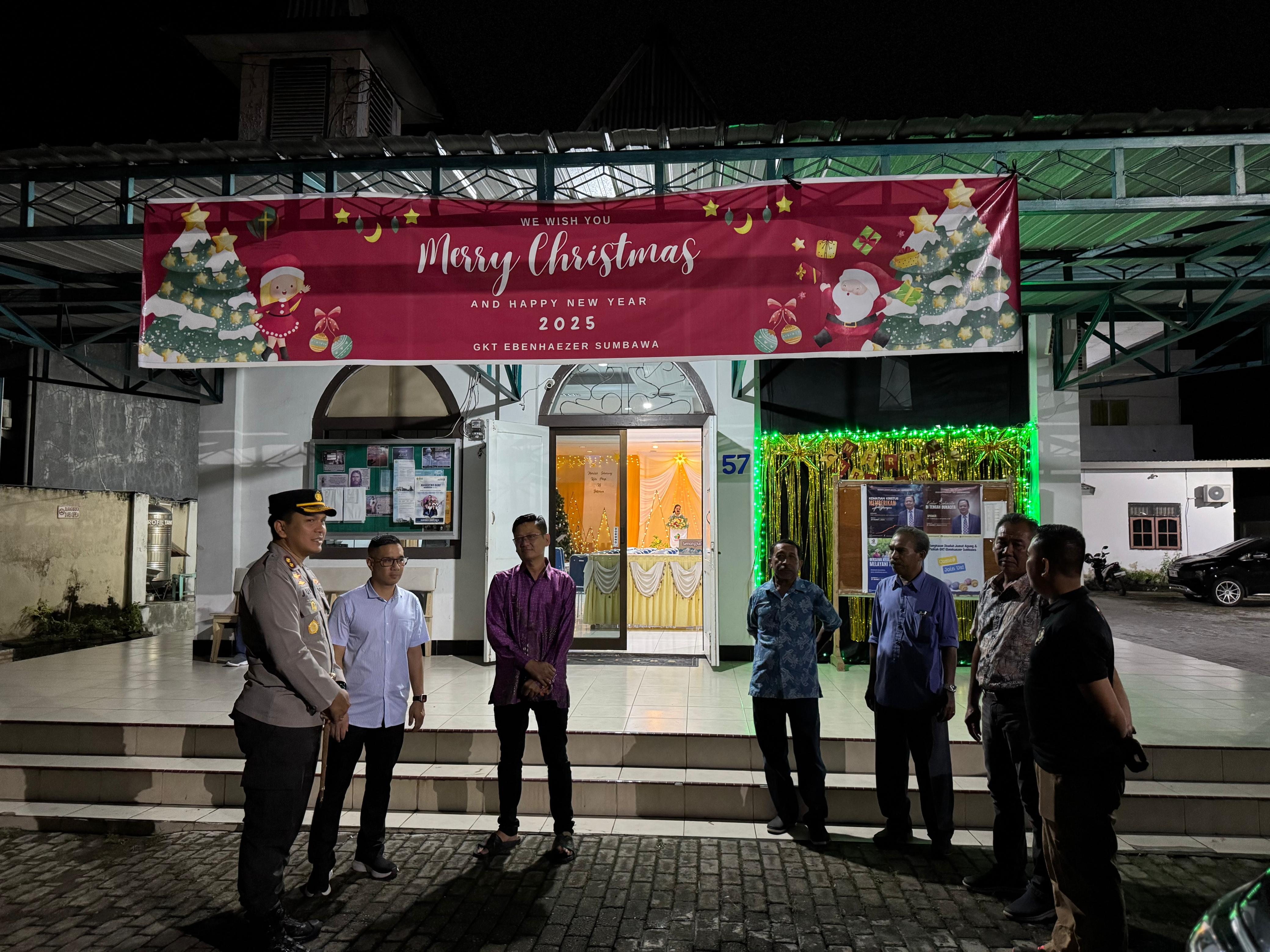 Didampingi para Pejabat Utama (PJU) Polres Sumbawa, Kapolres memantau langsung pelaksanaan ibadah misa malam Natal serta kesiapan petugas jaga di setiap gereja. Kunjungan ini bertujuan untuk memberikan rasa aman dan nyaman kepada jemaat yang melaksanakan ibadah.