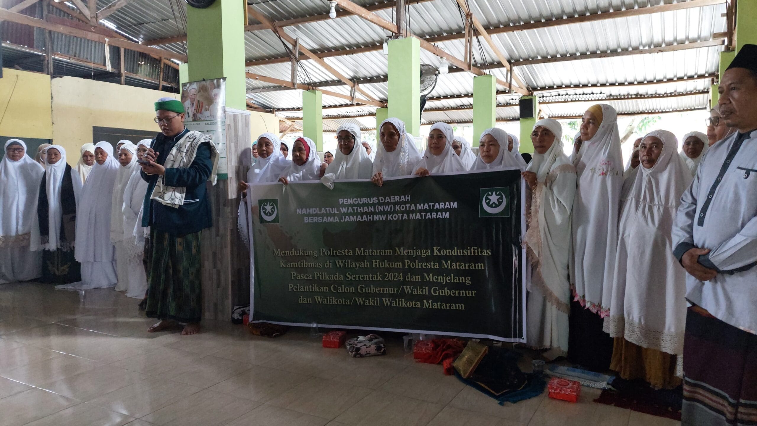 Mataram – Pengurus Daerah Nahdlatul Wathan (NW) Kota Mataram bersama Majelis Taklim Izzul Islam Wal Muslimin menggelar deklarasi mendukung Polresta Mataram dalam menjaga kondusifitas keamanan dan ketertiban masyarakat (Kamtibmas) pasca Pilkada Serentak 2024, Pada Jumat, 27 Desember 2024, pukul 14.15 WITA.