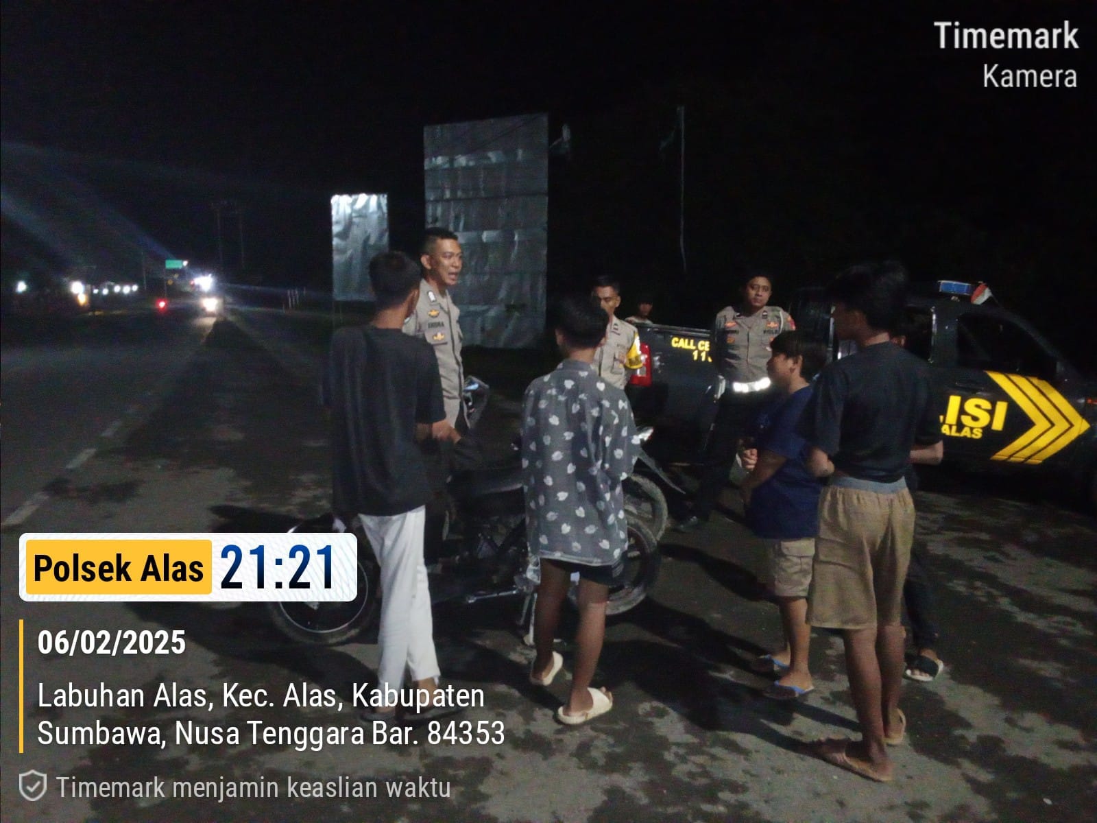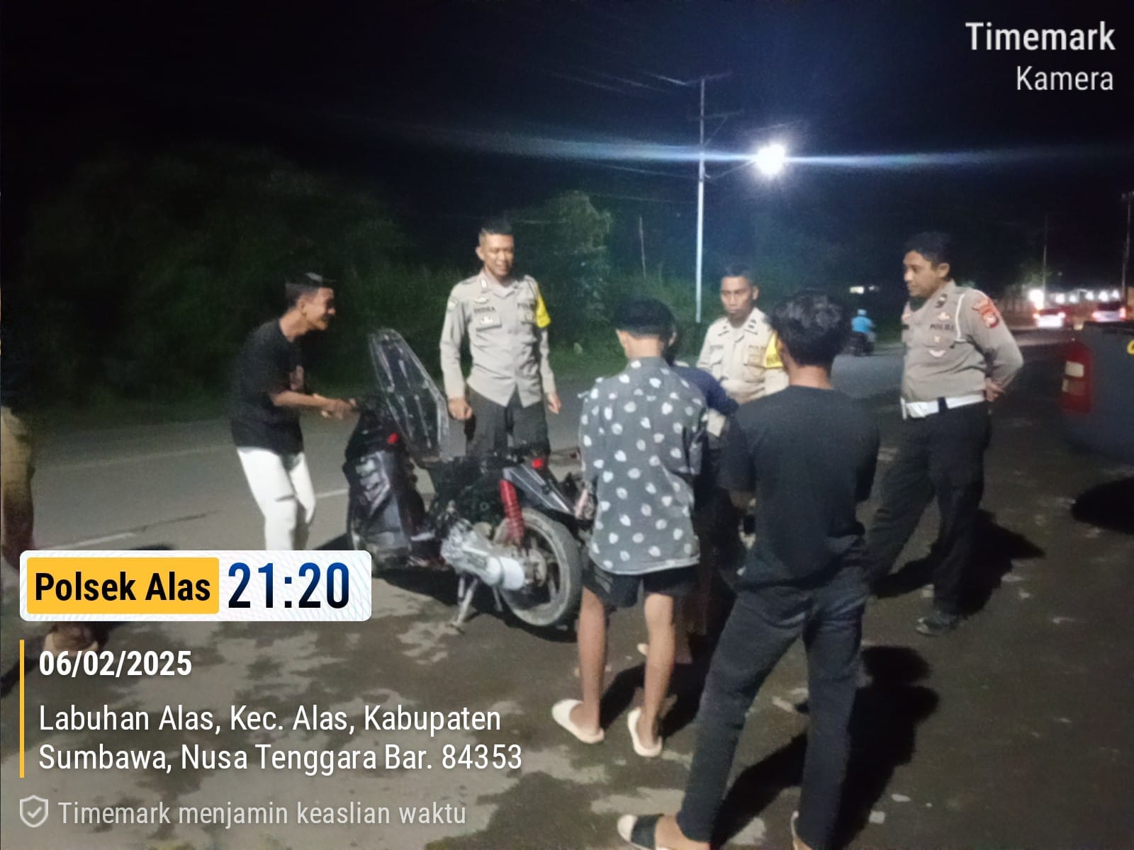 Sumbawa Besar –NTB, Dalam rangka menjaga situasi keamanan dan ketertiban masyarakat (Kamtibmas) di wilayah hukum Polsek Alas, pihak kepolisian setempat terus mengintensifkan pelaksanaan patroli malam, Kamis (06/02/25) malam.